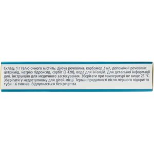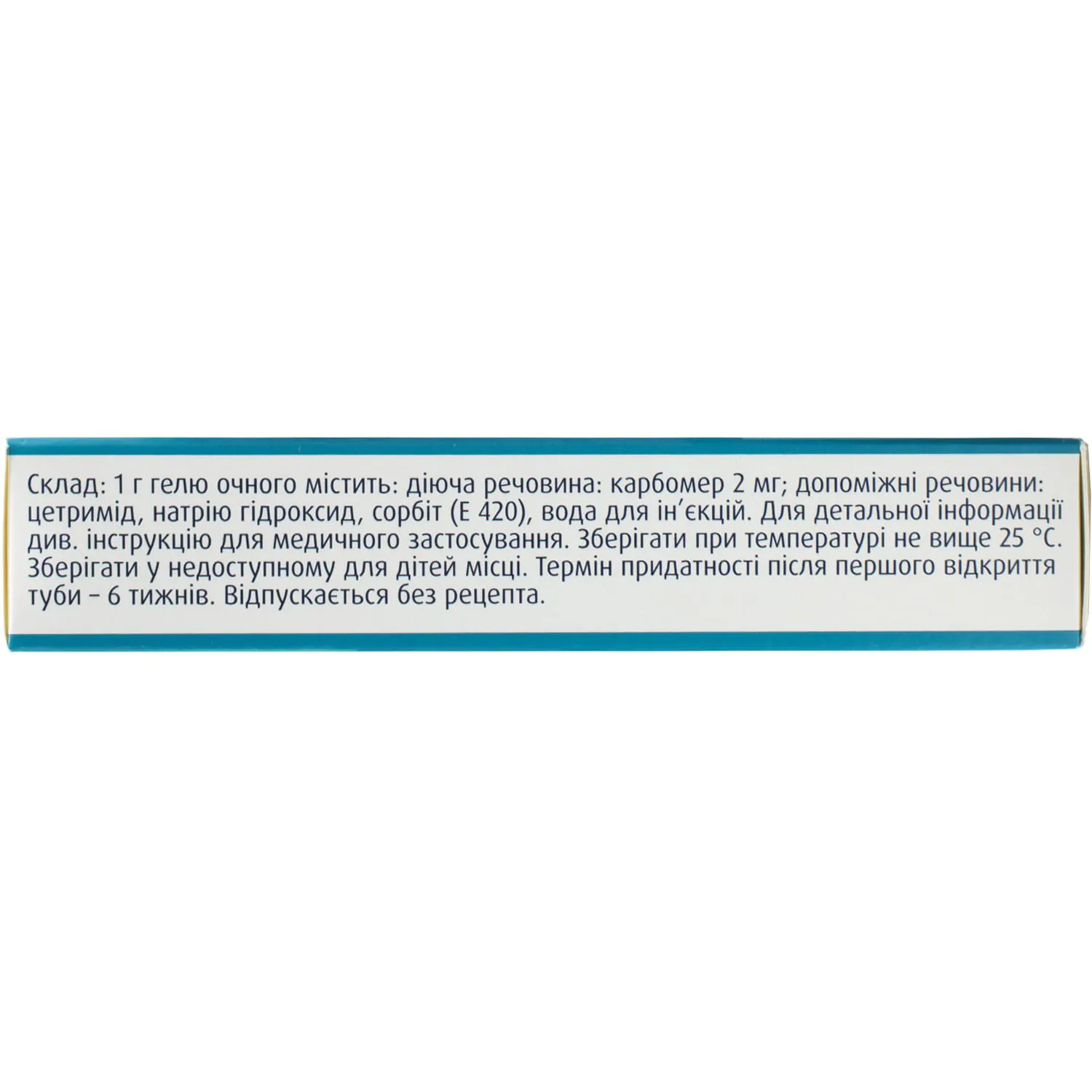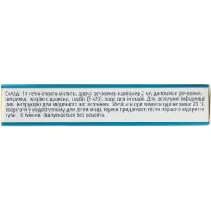 Pharmacodynamics. the basis of the drug is a high-molecular hydrophilic polymer, the pH and osmolality of which are similar to those of a normal tear film. due to its physical properties, the eye gel retains water and forms a transparent and moist film on the surface of the eye.