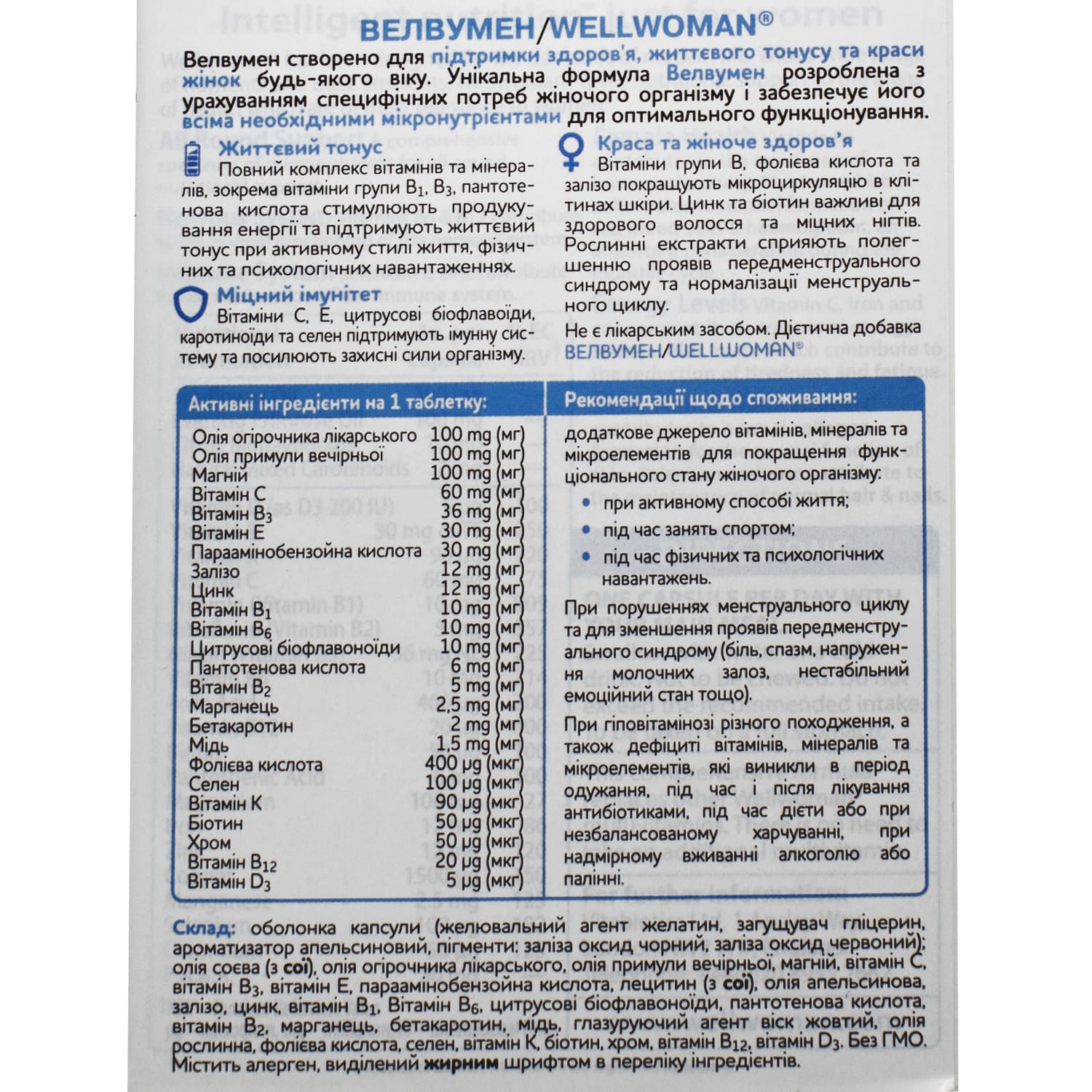 The stronger our immunity, the less often we get sick. Vitamins C and E, citrus bioflavonoids, ugrotinoids and selenium in Wellwoman support the immune system and strengthen the body’s defenses.