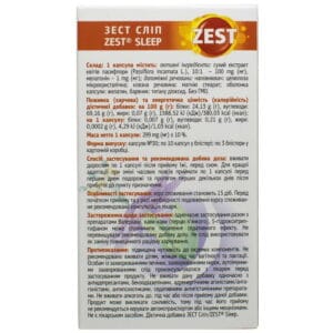 ZEST Sleep is used as a dietary supplement to the diet to reduce the time it takes to fall asleep and normalize the quality and rhythm of sleep.
