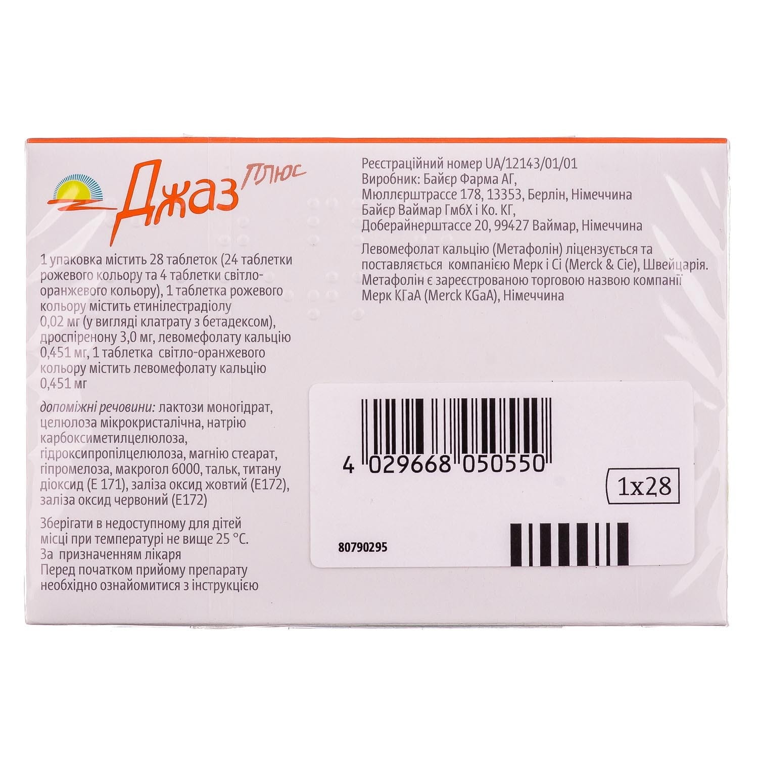 Active ingredients: ethinylestradiol, drospirenone, calcium levomefolate;